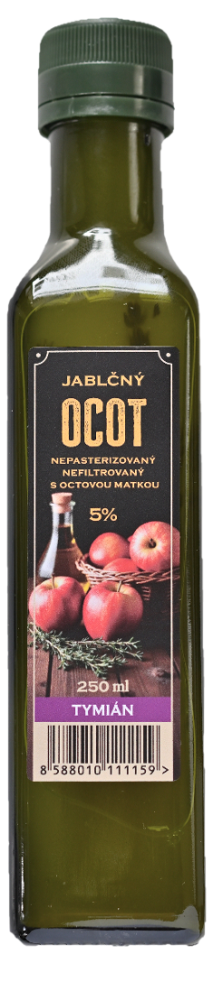 Apfelessig ist fermentiert, unpasteurisiert und ungefiltert. Es handelt sich um ein reines Naturprodukt, das auch die Essigmutter und natürliche Ablagerungen enthält. Thymian verleiht ihm ein feinwürziges Aroma und ein einzigartiges Geschmackserlebnis.