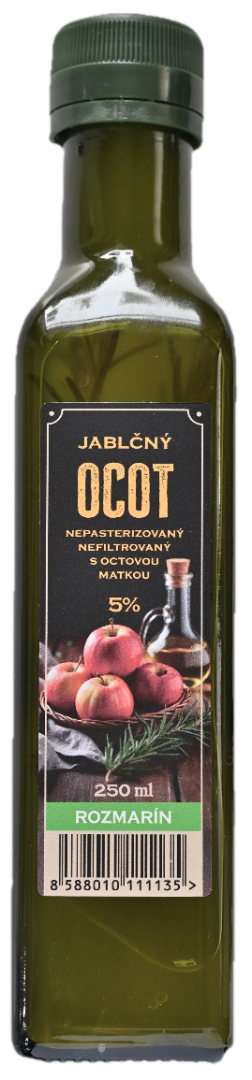 Jablčný ocot je fermentovaný, nepasterizovaný a nefiltrovaný. Ide čisto o prírodný produkt, ktorý obsahuje aj octovú matku a prírodné usadeniny. Rozmarín mu dodáva hĺbku a charakter. Chuť, ktorá povzbudí a osvieži zároveň. Pre tých, ktorí milujú prírodnú silu a výnimočný zážitok v každej kvapke.